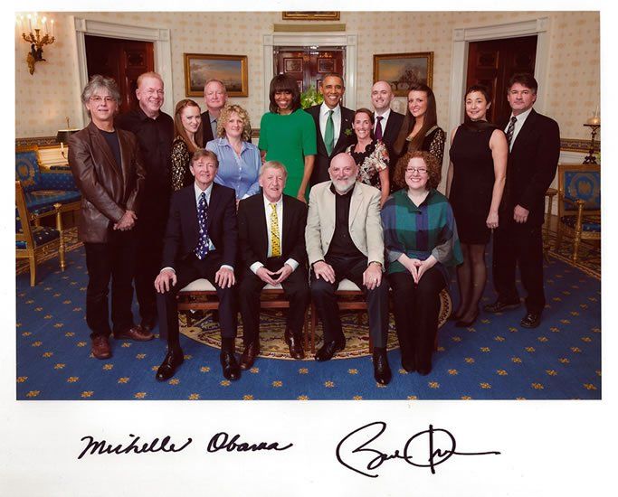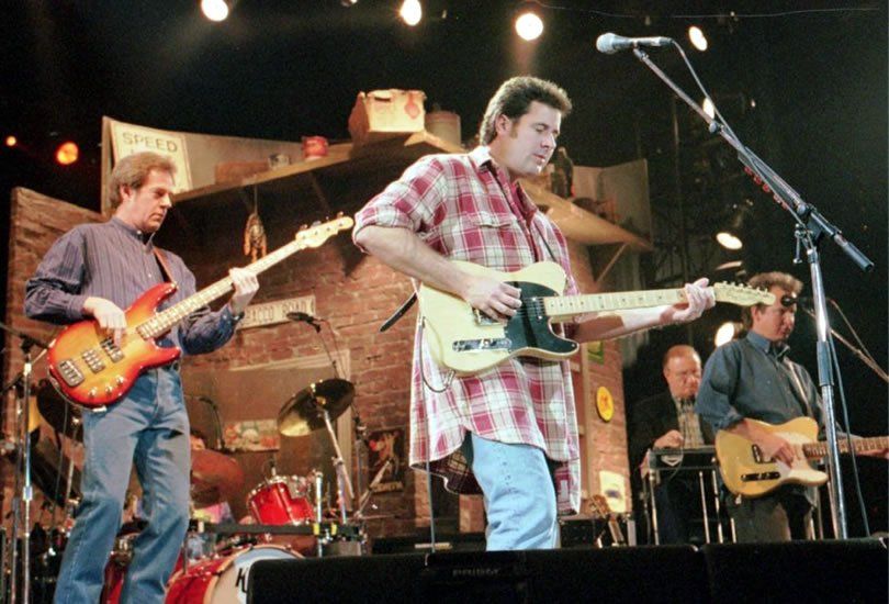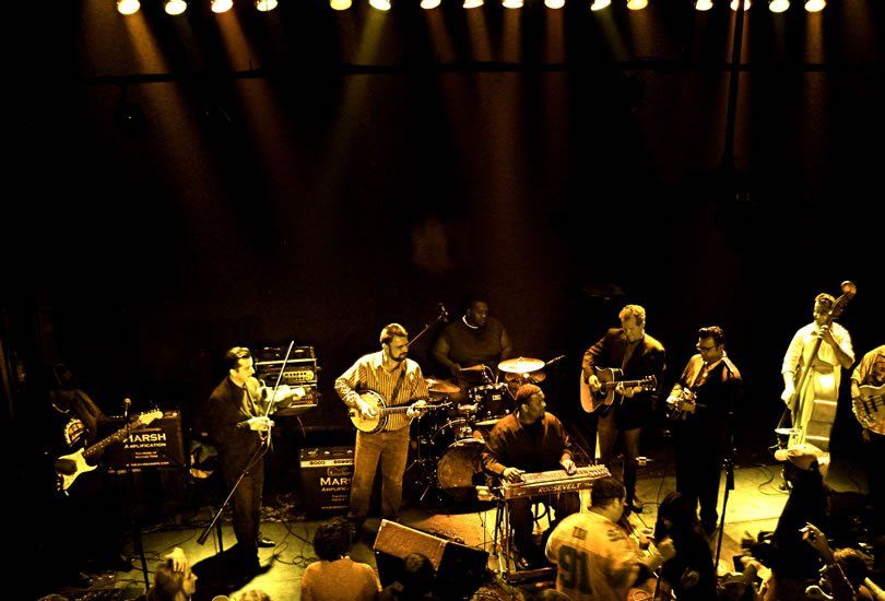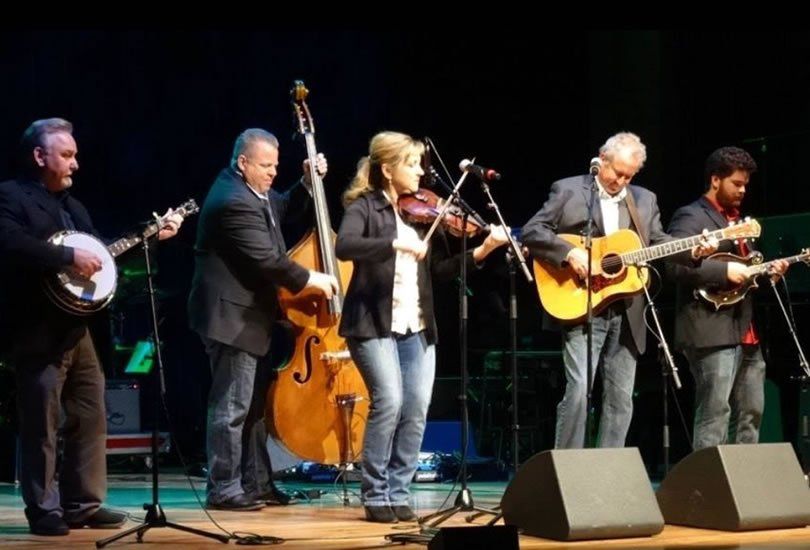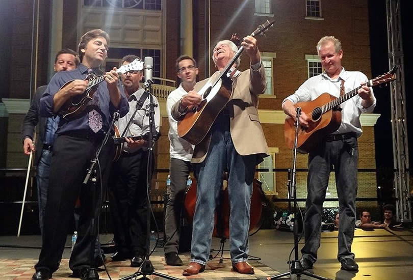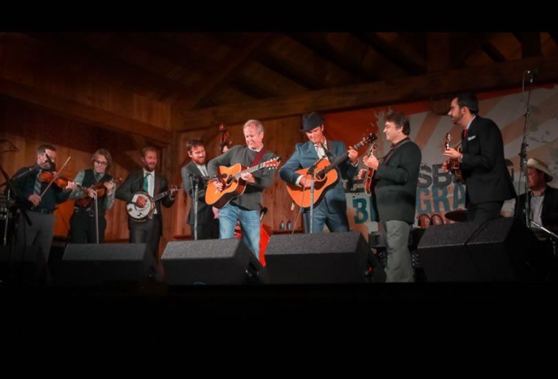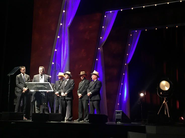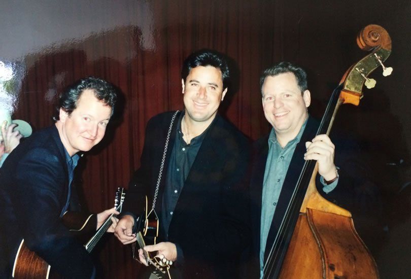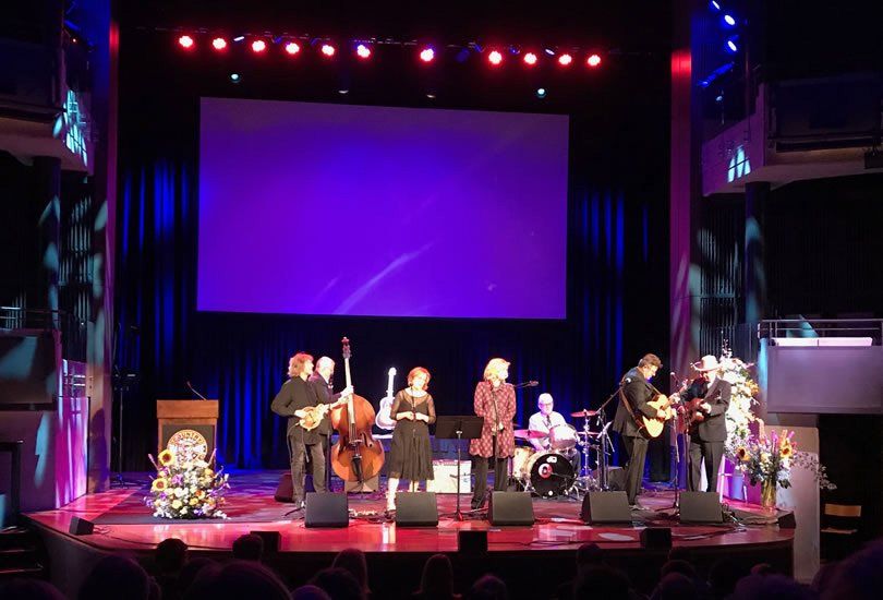 Sam Bush, Mike Bub, Iris Dement, Alison Krauss, John Gardner, Vince Gill & myself, honoring Randy Scruggs at his memorial at the CMHOF.